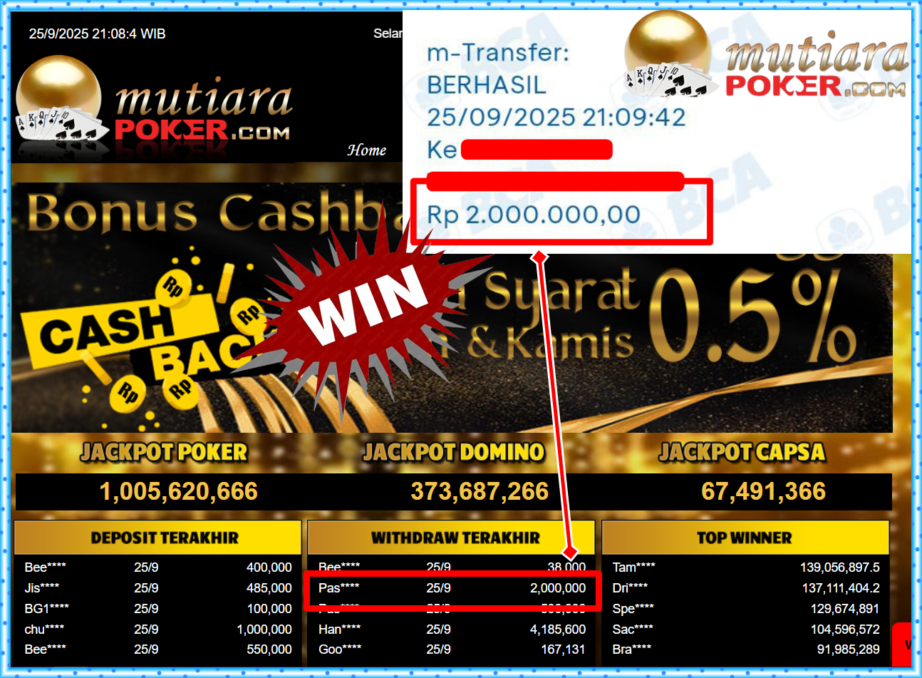 Bukti Withdraw ( 2,000,000,-) Member Setia Mutiarapoker