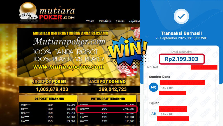 Bukti Withdraw ( 2,199,303,- ) Member Setia MutiaraPoker