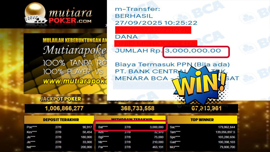 Bukti Withdraw ( 3,000,000,- ) Member Setia MutiaraPoker