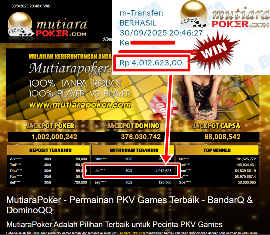 Bukti Withdraw ( 4,012,623,- ) Member Setia MutiaraPoker