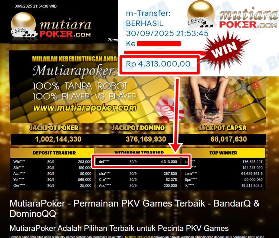 Bukti Withdraw ( 4,313,000,- ) Member Setia MutiaraPoker