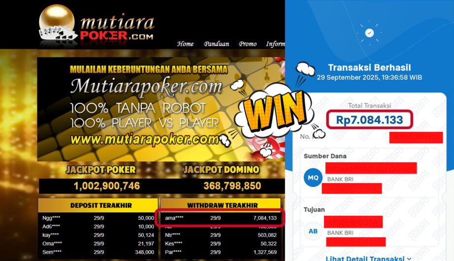 Bukti Withdraw ( 7,084,133,- ) Member Setia MutiaraPoker