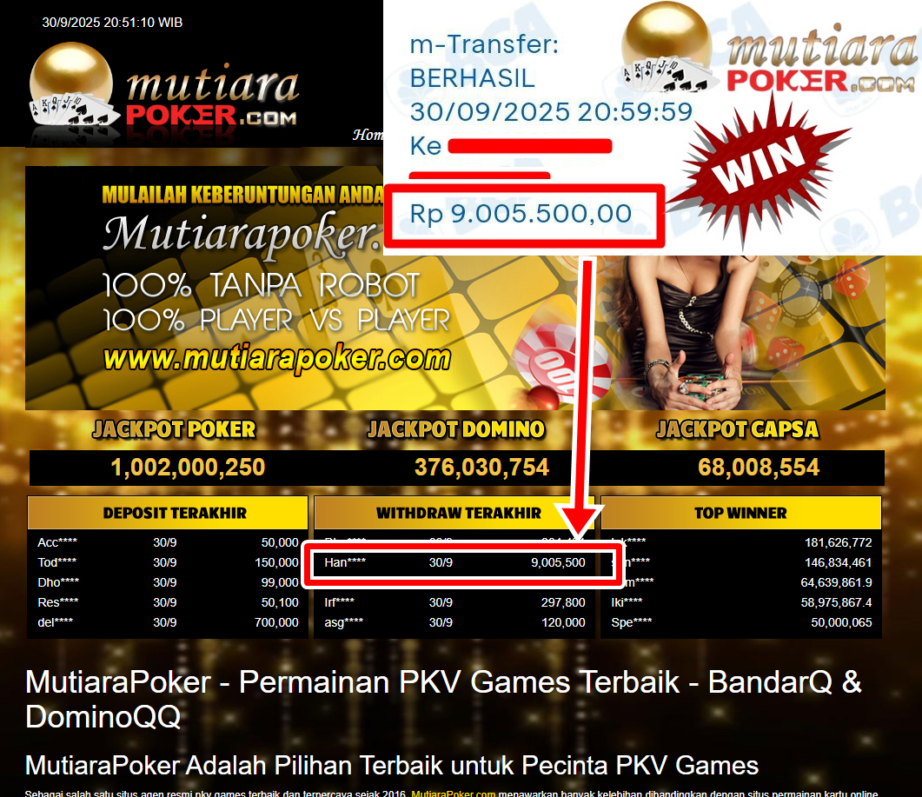 Bukti Withdraw ( 9,005,500,- ) Member Setia MutiaraPoker