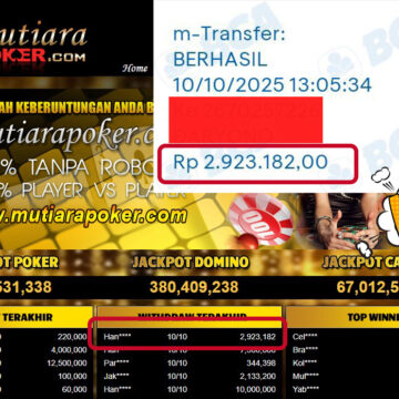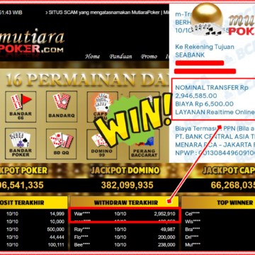 Bukti Withdraw (2,923,182,- ) Member Setia MutiaraPoker
