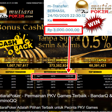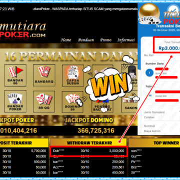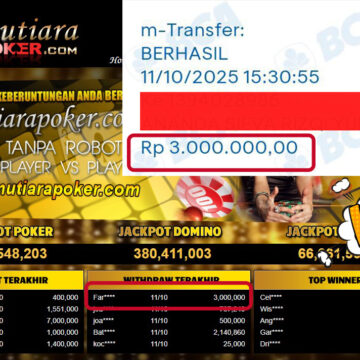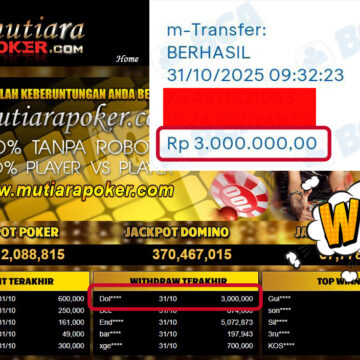 Bukti Withdraw ( 3,000,000,- ) Member Setia MutiaraPoker