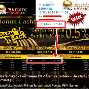 Bukti Withdraw ( 4,622,137,- ) Member Setia MutiaraPoker