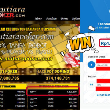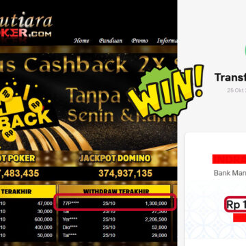 Bukti Withdraw ( 1,300,000,- ) Member Setia MutiaraPoker