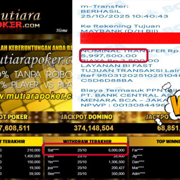 Bukti Withdraw ( 6,000,000,- ) Member Setia MutiaraPoker
