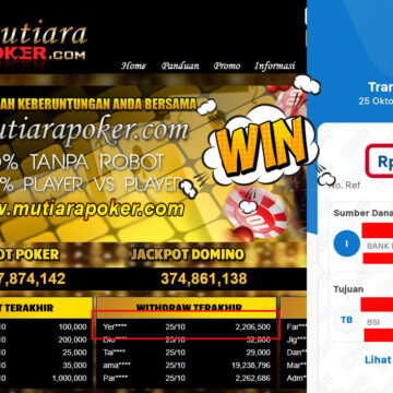 Bukti Withdraw ( 2,206,500,- ) Member Setia MutiaraPoker