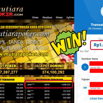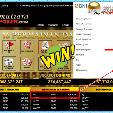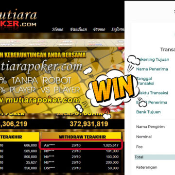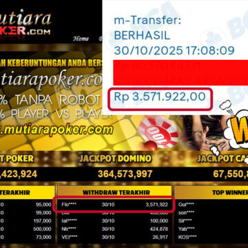 Bukti Withdraw ( 1,698,333,- ) Member Setia MutiaraPoker