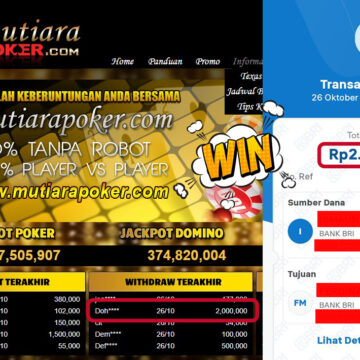 Bukti Withdraw ( 2,000,000,- ) Member Setia MutiaraPoker