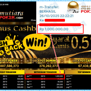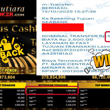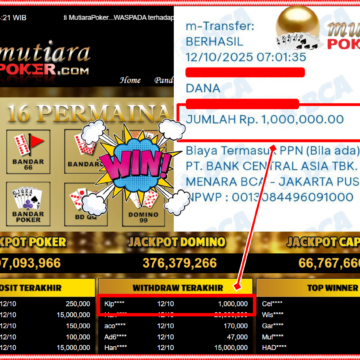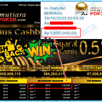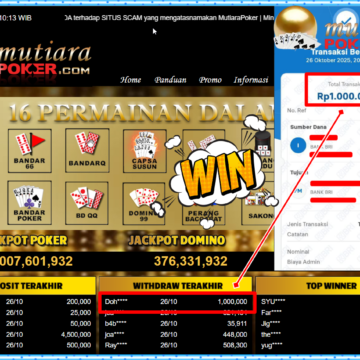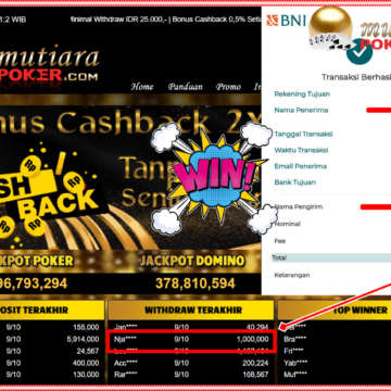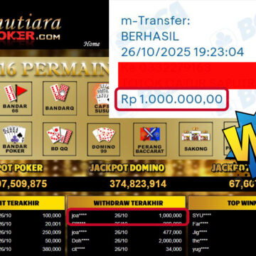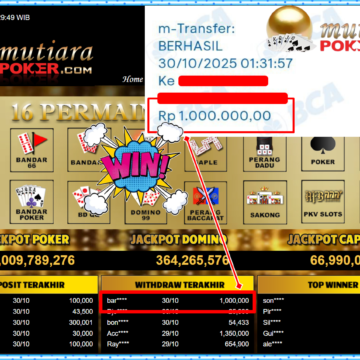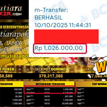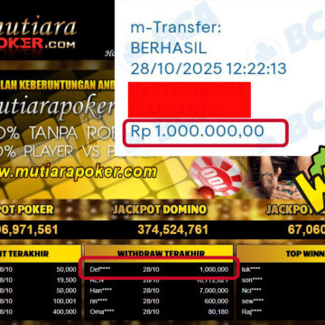 Bukti Withdraw ( 1,000,000,- ) Member Setia MutiaraPoker