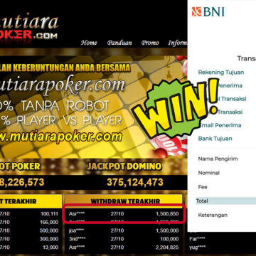 Bukti Withdraw ( 1,500,850,- ) Member Setia MutiaraPoker
