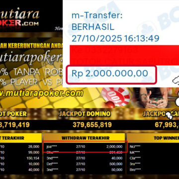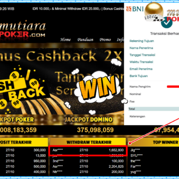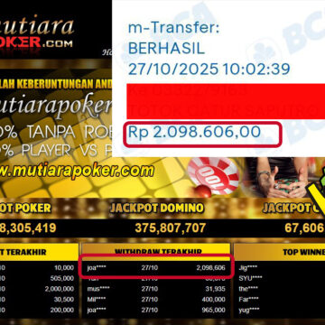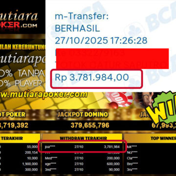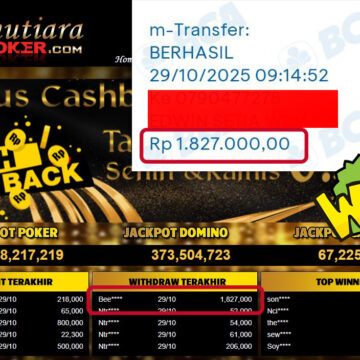 Bukti Withdraw ( 1,827,000,- ) Member Setia MutiaraPoker