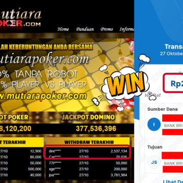 Bukti Withdraw ( 2,537,134,- ) Member Setia MutiaraPoker