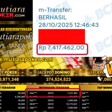 Bukti Withdraw ( 7,417,462,- ) Member Setia MutiaraPoker