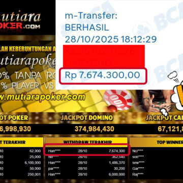 Bukti Withdraw ( 7,674,300,- ) Member Setia MutiaraPoker