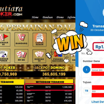 Bukti Withdraw ( 1,306,500,- ) Member Setia MutiaraPoker