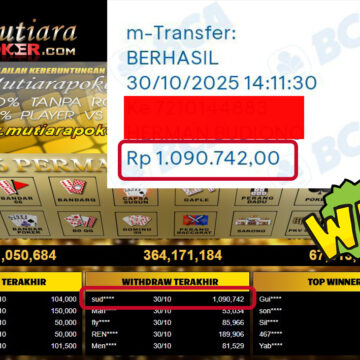 Bukti Withdraw ( 1,090,742,- ) Member Setia MutiaraPoker