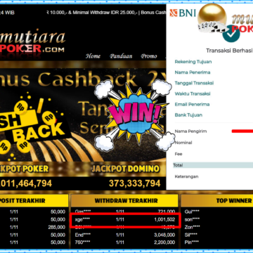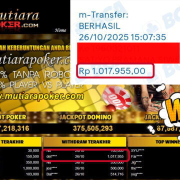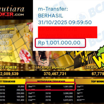 Bukti Withdraw ( 1,001,000,- ) Member Setia MutiaraPoker