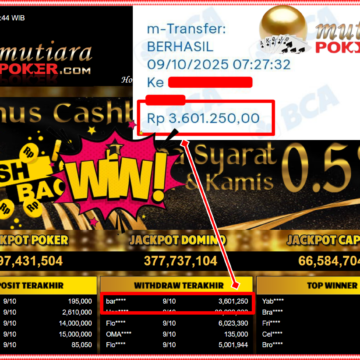 Bukti Withdraw ( 3,308,445,- ) Member Setia MutiaraPoker