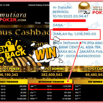 Bukti Withdraw ( 1,016,590,- ) Member Setia MutiaraPoker
