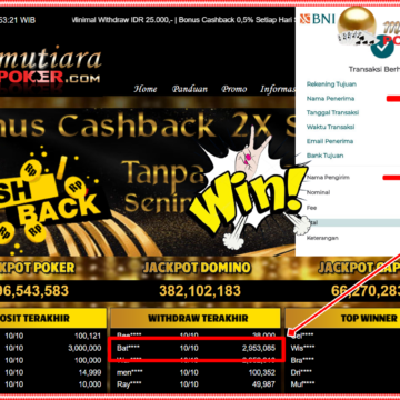 Bukti Withdraw ( 2,953,085,- ) Member Setia MutiaraPoker