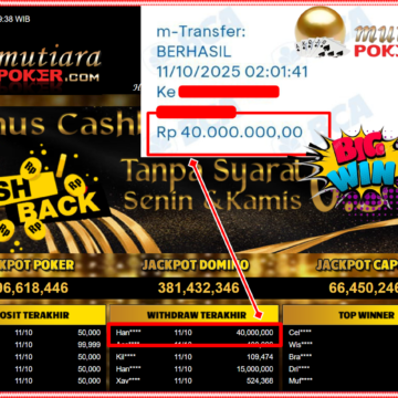 Bukti Withdraw ( 40,000,000,- ) Member Setia MutiaraPoker