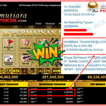 Bukti Withdraw (2,418,360,- ) Member Setia MutiaraPoker