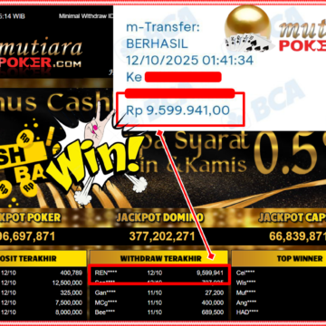 Bukti Withdraw ( 9,599,941,- ) Member Setia MutiaraPoker