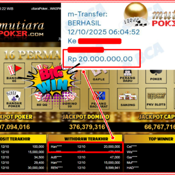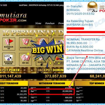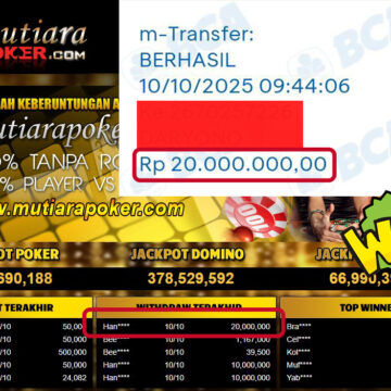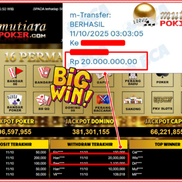 Bukti Withdraw ( 20,000,000,- ) Member Setia MutiaraPoker