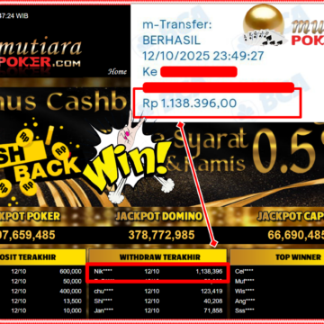 Bukti Withdraw ( 1,138,396,- ) Member Setia MutiaraPoker