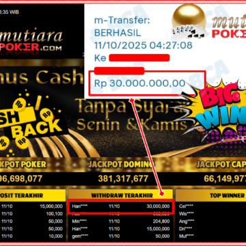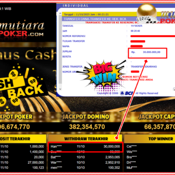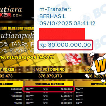 Bukti Withdraw ( 30,000,000,- ) Member Setia MutiaraPoker