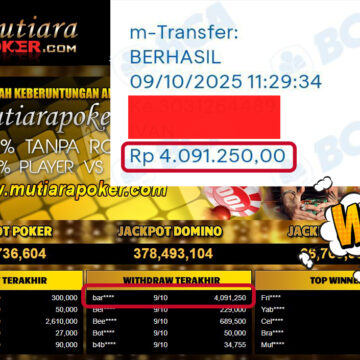 Bukti Withdraw ( 4,091,250,- ) Member Setia MutiaraPoker