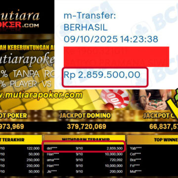 Bukti Withdraw ( 2,859,500,- ) Member Setia MutiaraPoker