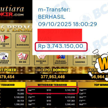 Bukti Withdraw ( 3,743,150,- ) Member Setia MutiaraPoker