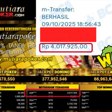 Bukti Withdraw ( 4,017,925,- ) Member Setia MutiaraPoker