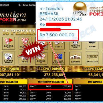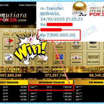 Bukti Withdraw ( 7,500,000,- ) Member Setia MutiaraPoker