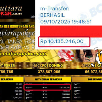 Bukti Withdraw ( 10,135,246,- ) Member Setia MutiaraPoker