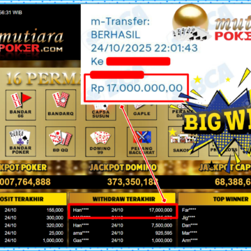 Bukti Withdraw ( 17,000,000,- ) Member Setia MutiaraPoker