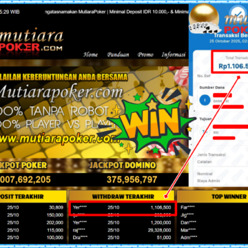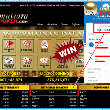 Bukti Withdraw ( 1,106,500,- ) Member Setia MutiaraPoker