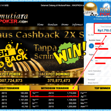 Bukti Withdraw ( 1,710,000,- ) Member Setia MutiaraPoker