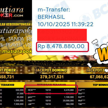 Bukti Withdraw (8,478,880,- ) Member Setia MutiaraPoker