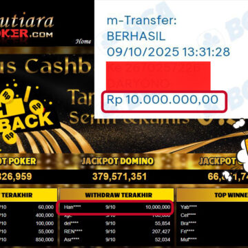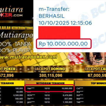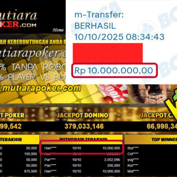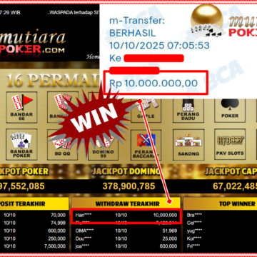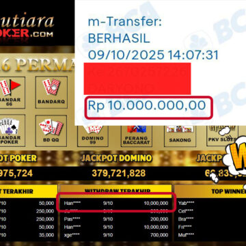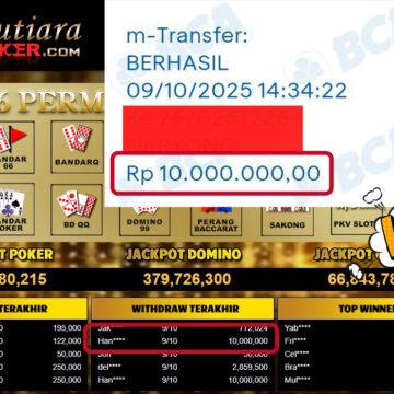 Bukti Withdraw ( 10,000,000,- ) Member Setia MutiaraPoker