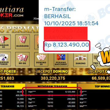 Bukti Withdraw (8,123,490,- ) Member Setia MutiaraPoker