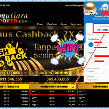 Bukti Withdraw ( 1,906,500,- ) Member Setia MutiaraPoker