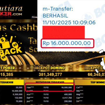 Bukti Withdraw (16,000,000,- ) Member Setia MutiaraPoker