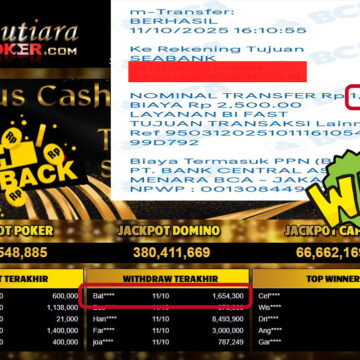 Bukti Withdraw ( 1,654,300,- ) Member Setia MutiaraPoker