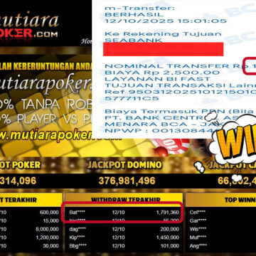 Bukti Withdraw ( 1,791,360,- ) Member Setia MutiaraPoker