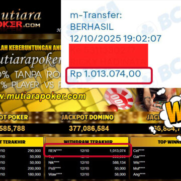 Bukti Withdraw ( 1,013,074,- ) Member Setia MutiaraPoker